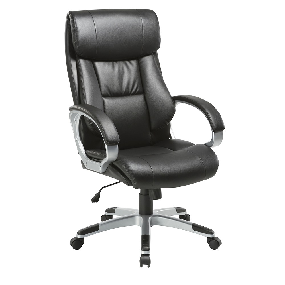כסא מנהלים אלכסנדר מעניק חוויית ישיבה נוחה ומפנקת, בזכות ריפוד דמוי עור שחור איכותי ומנגנון ארגונומי המותאם למשתמש.