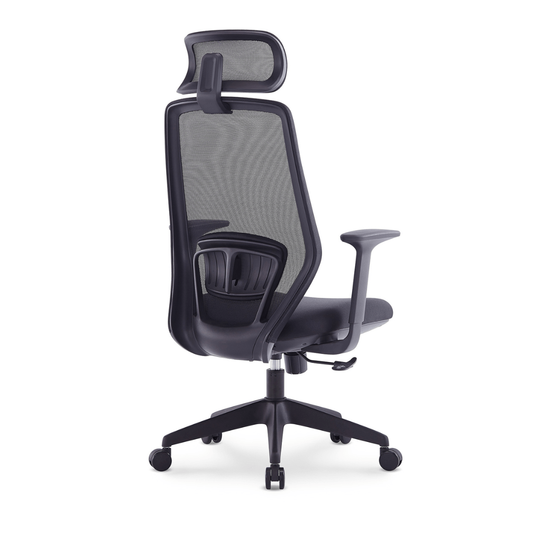 גב רשת מאוורר בצבע אפור או שחור מעניק תמיכה מלאה לגב העליון ושומר על אוורור נעים.