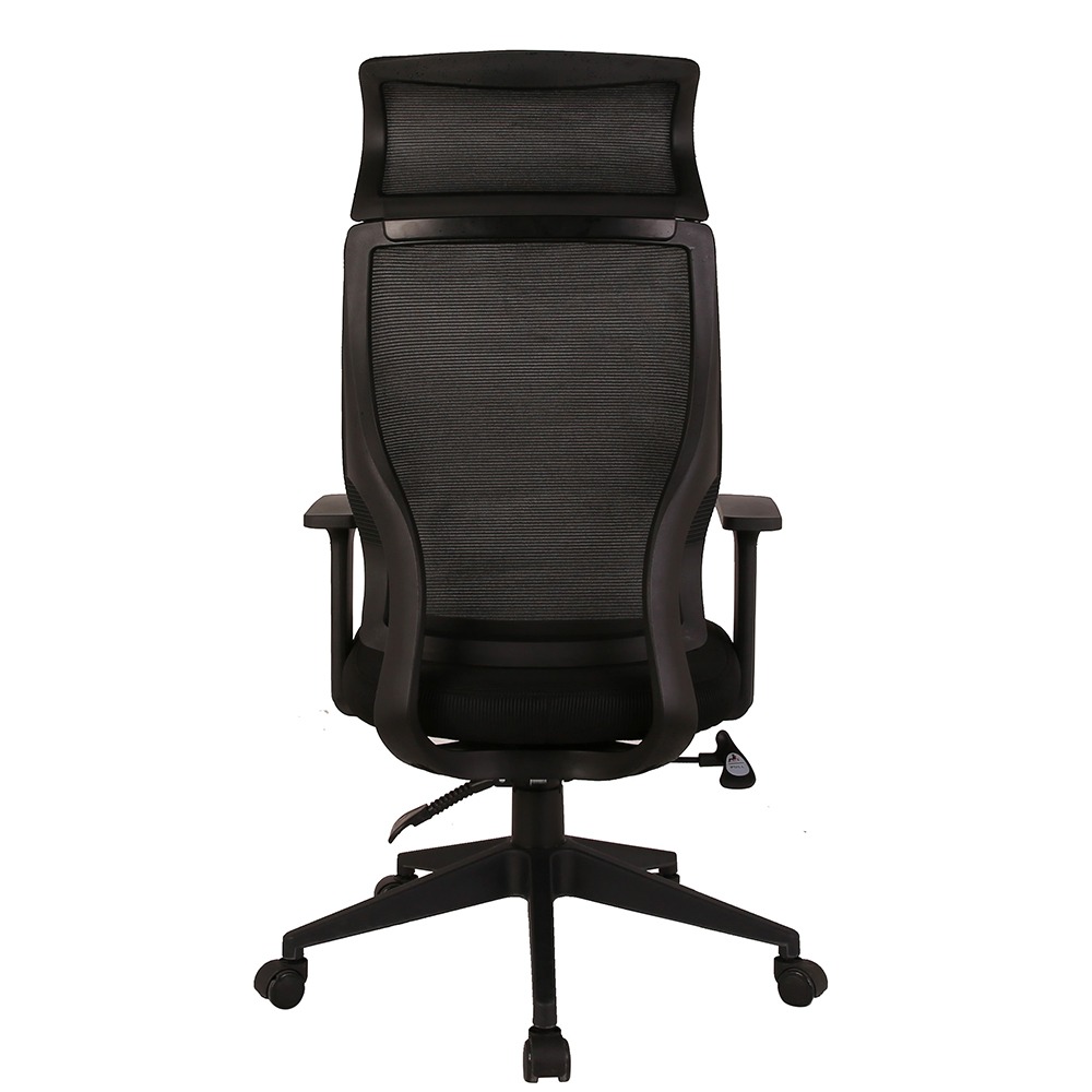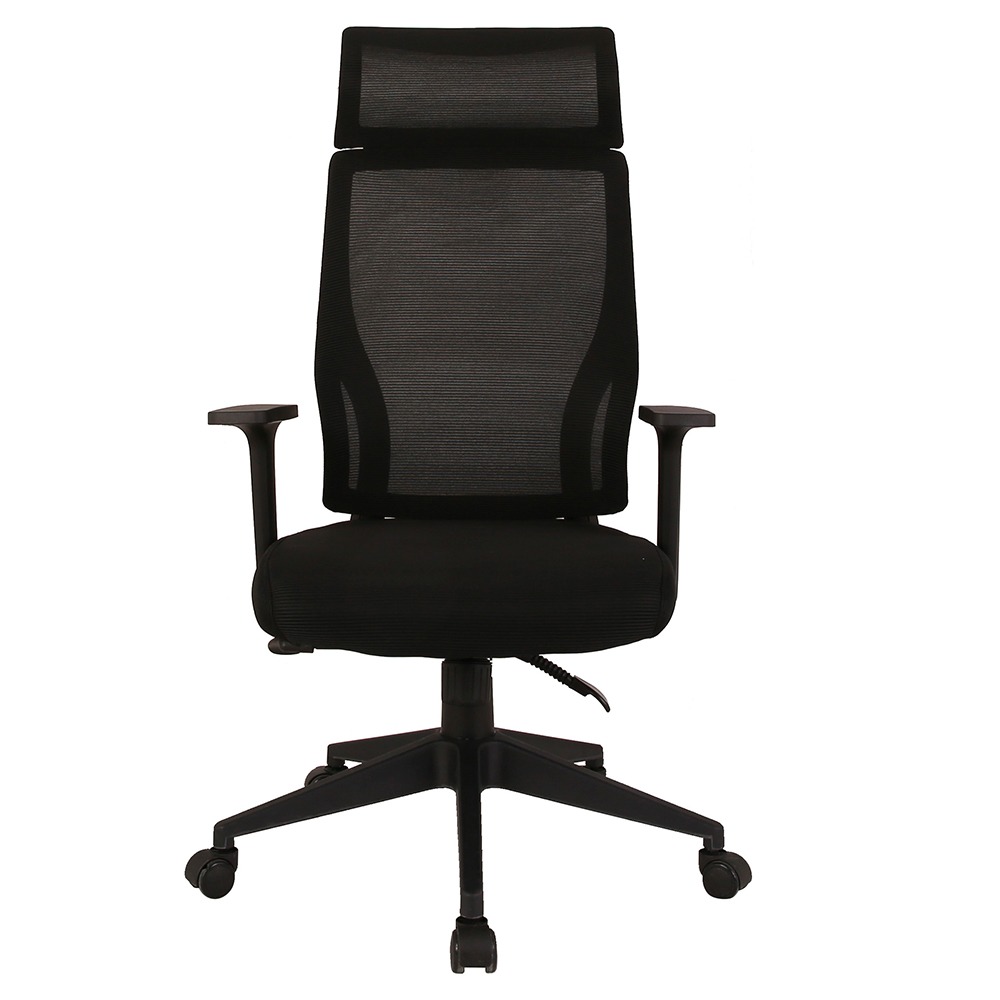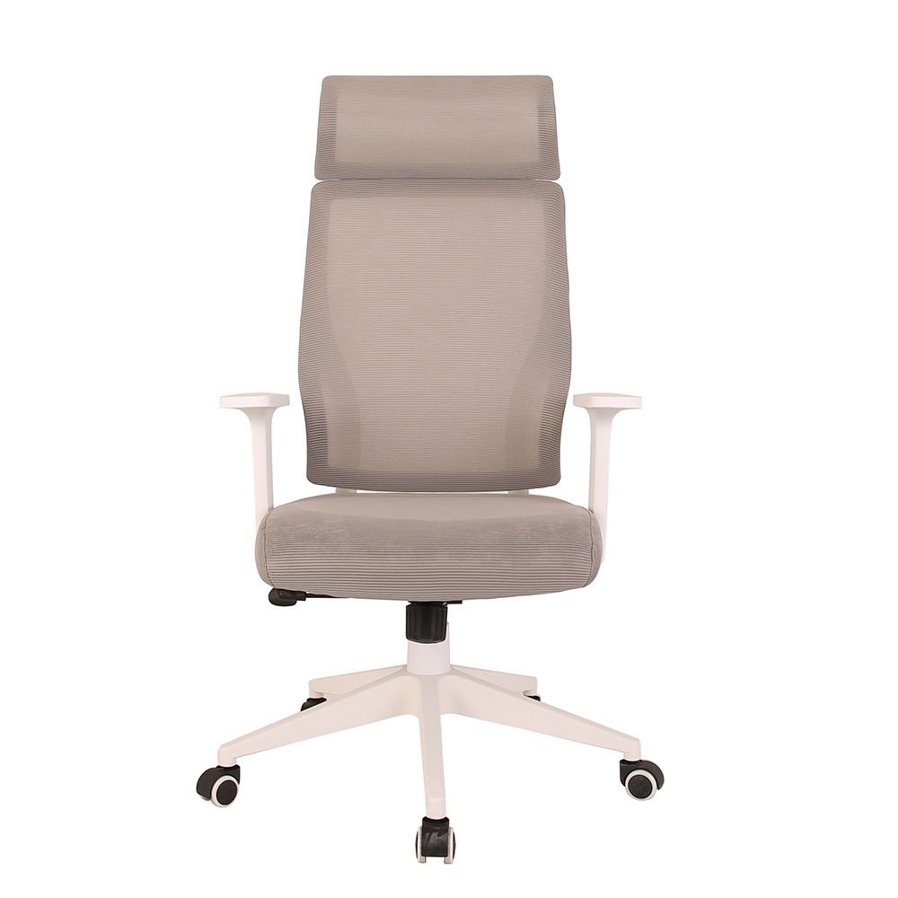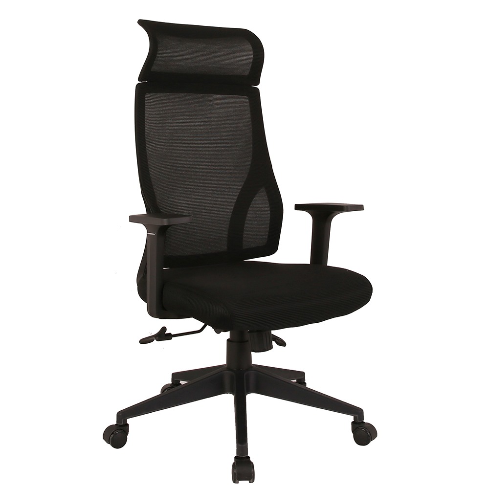 כסא מנהלים דגם מאורו בעיצוב מודרני עם גב רשת נושם ומושב מרופד בבד איכותי.