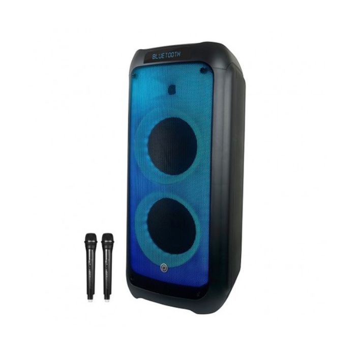 המערכת מגיעה עם שני מיקרופונים אלחוטיים, שליטה נפרדת על ווליום ואקו, ותאורת RGB צבעונית ליצירת אווירה מדהימה.